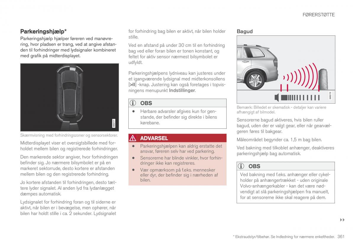 * Ekstraudstyr/tilbehør. Se Indledning for nærmere enkeltheder. 361
