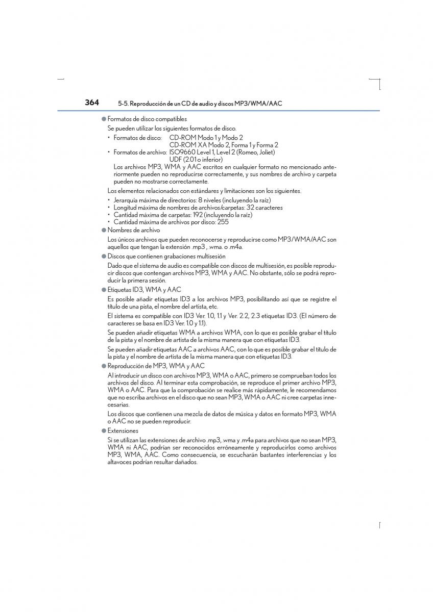 364 5-5. Reproducción de un CD de audio y discos MP3/WMA/AAC