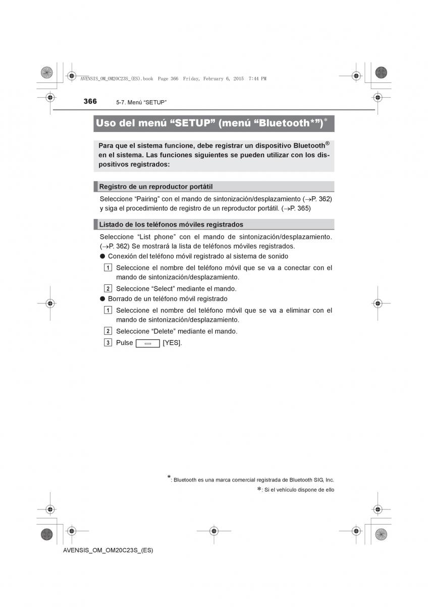 AVENSIS_OM_OM20C23S_(ES).book Page 366 Friday, February 6, 2015 7:44 PM