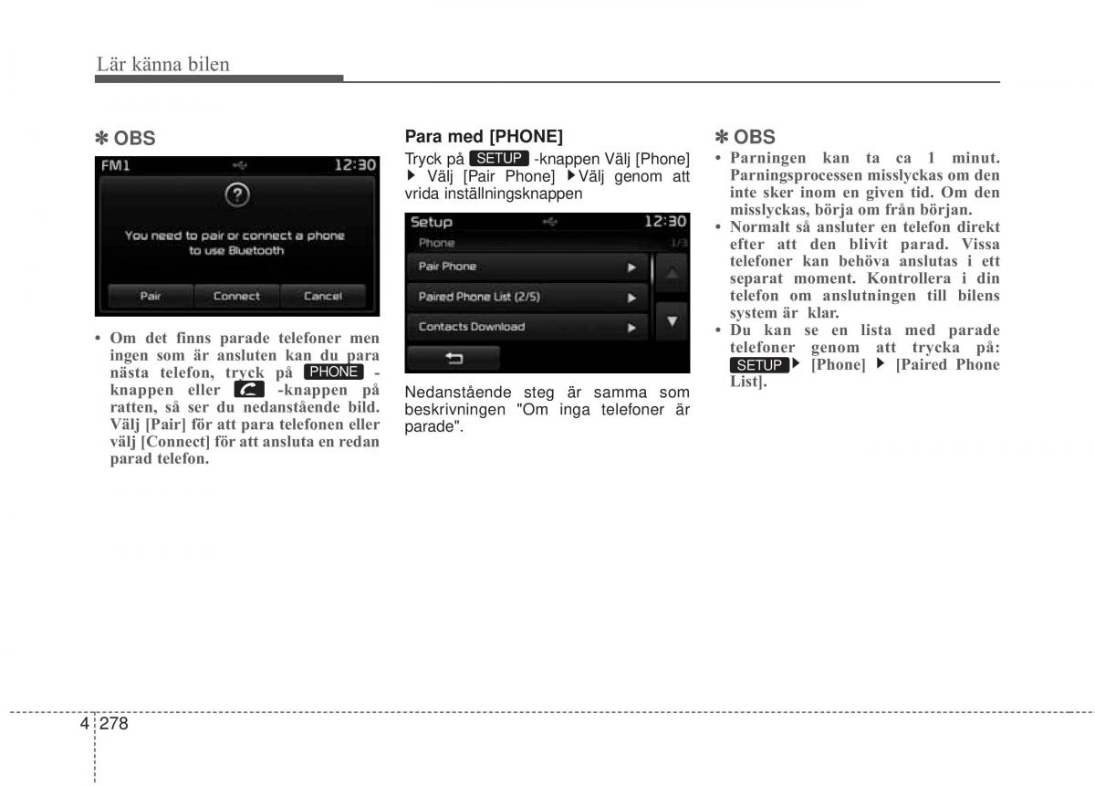 Tryck på SETUP -knappen Välj [Phone]• Parningen kan ta ca 1 minut.