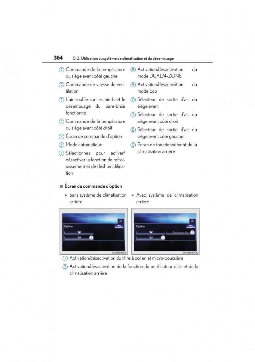364 5-3. Utilisation du système de climatisation et du désembuage