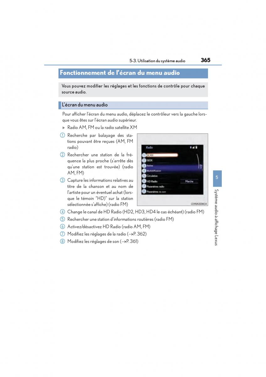 7 Modifiez les réglages de la radio (→P. 362) ge L