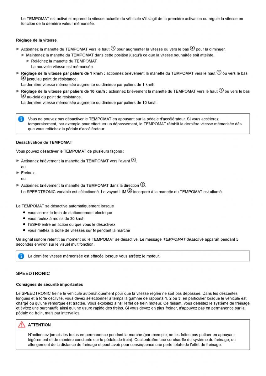 temporairement, par exemple pour effectuer un dépassement, le TEMPOMAT rétablit la dernière vitesse mémorisée dès