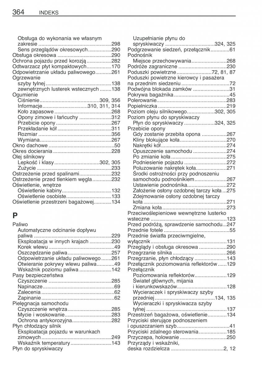 Ko∏o zapasowe.268Poziom oleju silnikowego.302, 305