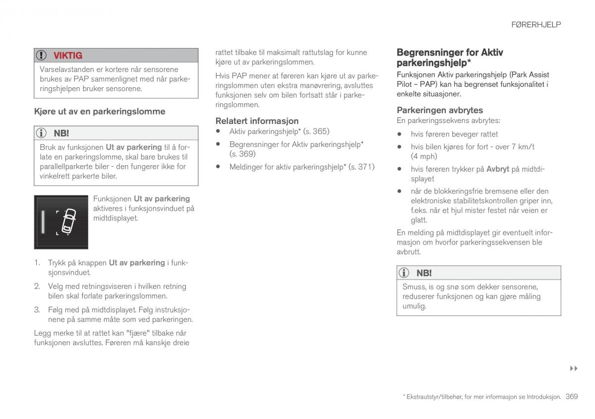 brukes av PAP sammenlignet med når parke-ringslommen uten ekstra manøvrering, avsluttesPilot – PAP) kan ha begrenset funksjonalitet i