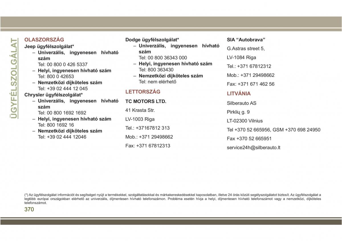 Chrysler ügyfélszolgálat* LITVÁNIA