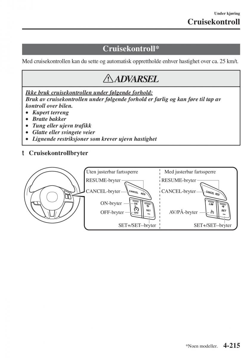 Med cruisekontrollen kan du sette og automatisk opprett holde enhver hastighet over ca. 25 km/t.