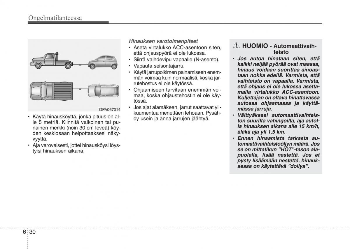 • Käytä hinausköyttä, jonka pituus on al-kuumentua menettäen tehoaan. Pysäh -• Välttyäksesi automaattivaihteis-