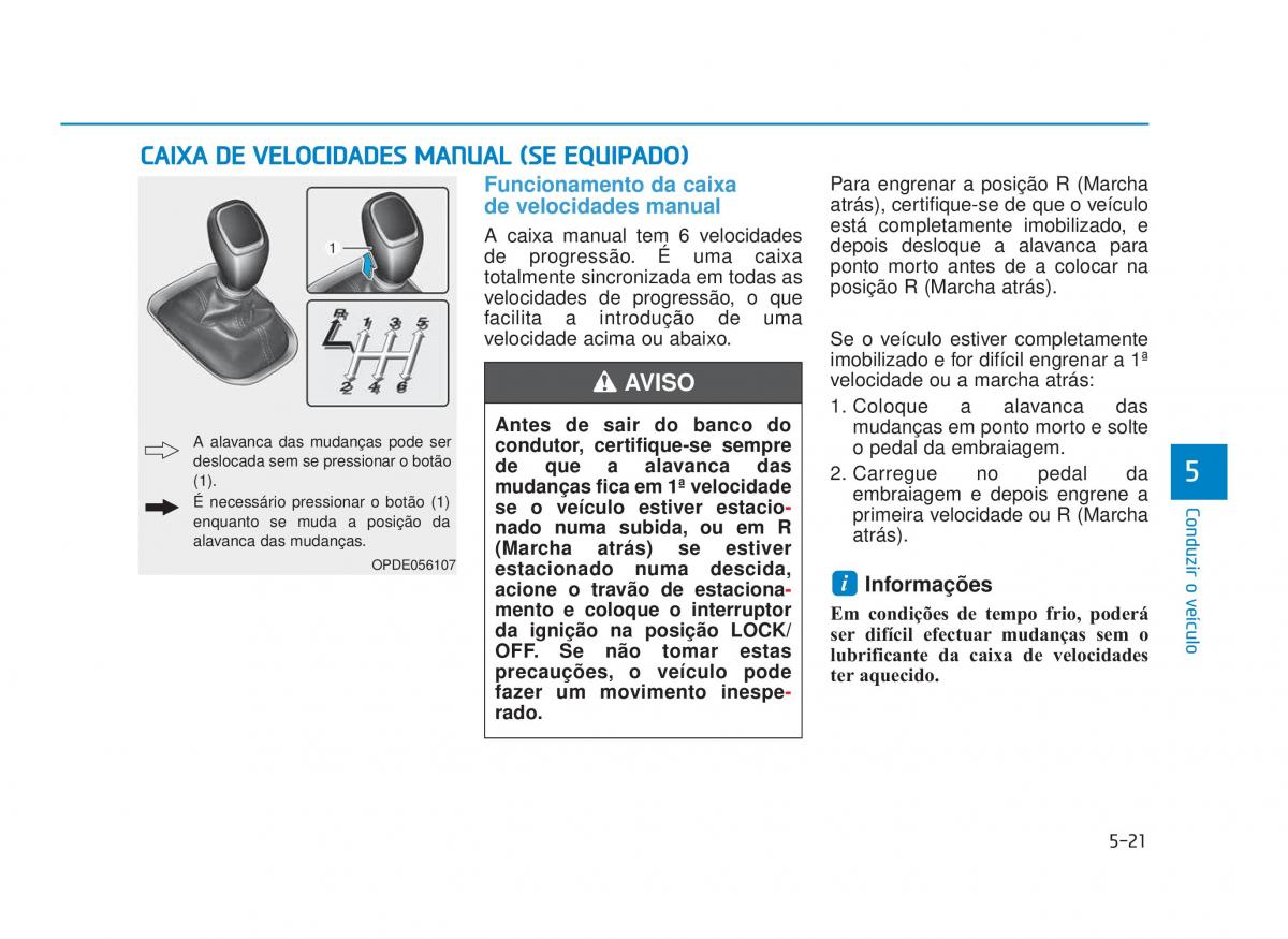 enquanto se muda a posição da primeira velocidade ou R (Marcha