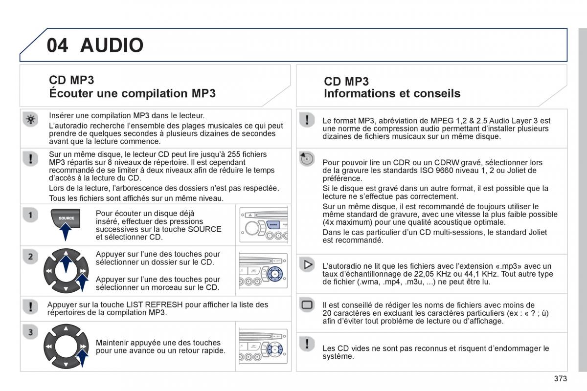 L’autoradio recherche l’ensemble des plages musicales ce qui peut une norme de compression audio permettant d’installer plusieurs