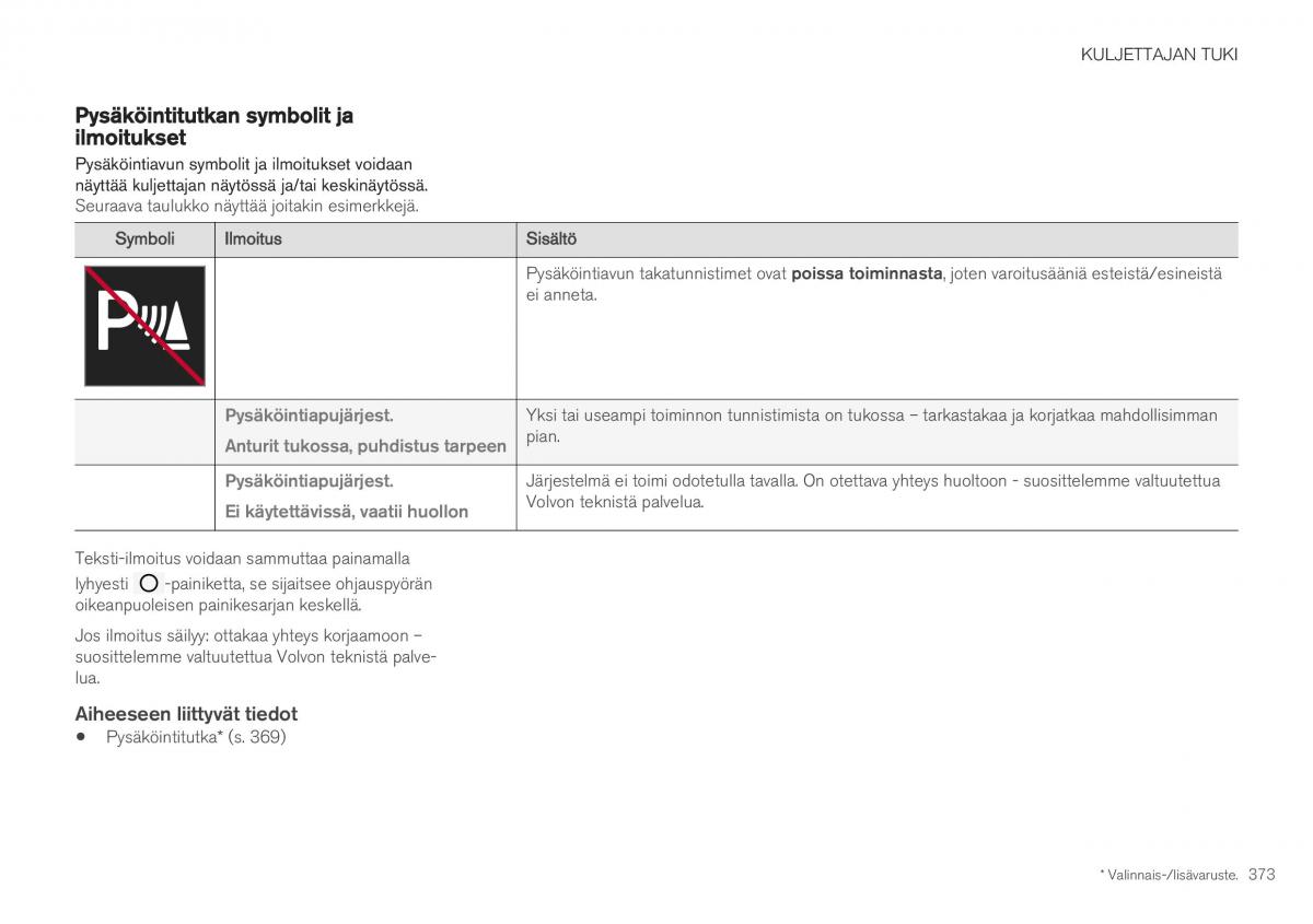• Pysäköintitutka* (s. 369)