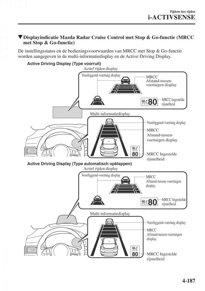 Displayindicatie Mazda Radar Cruise Control met Stop & Go-functie (MRCC