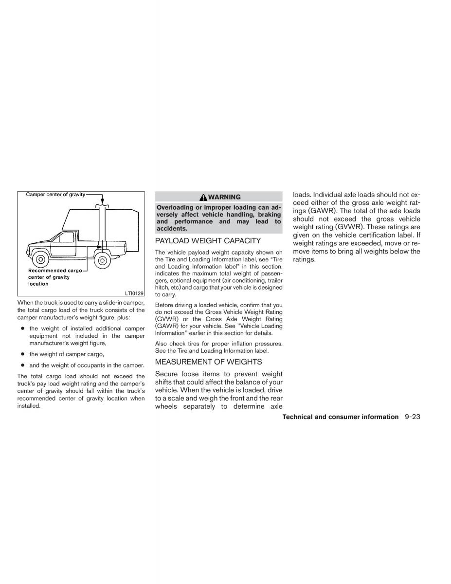 ● the weight of installed additional camper(GAWR) for your vehicle. See ’’Vehicle Loading