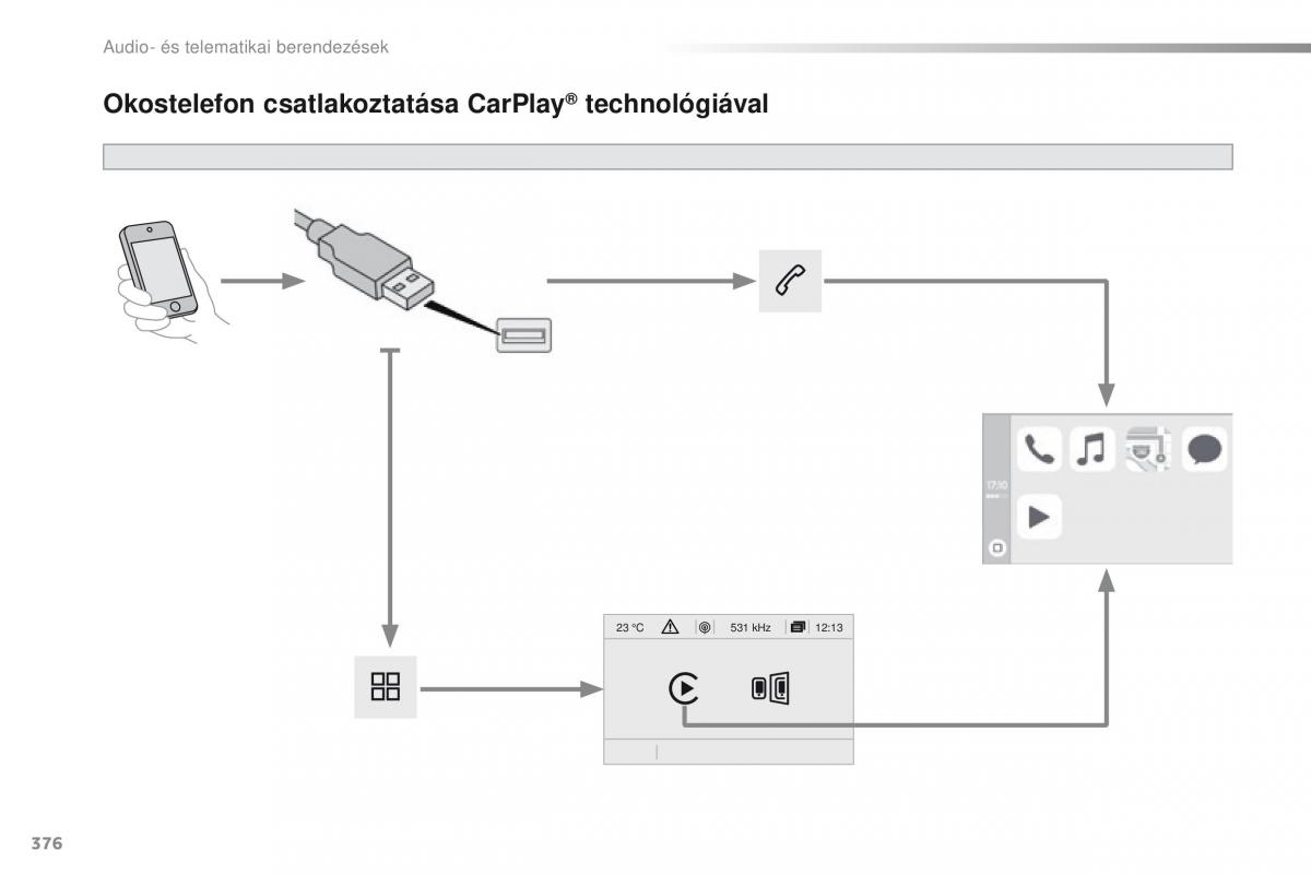 Okostelefon csatlakoztatása CarPlay technológiával