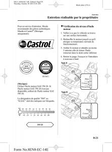 Pour un service d'entretien, Mazda qVérification du niveau d'huile