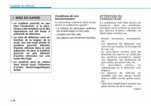 Conditions de fonctionnement (alerte de circulation transversale