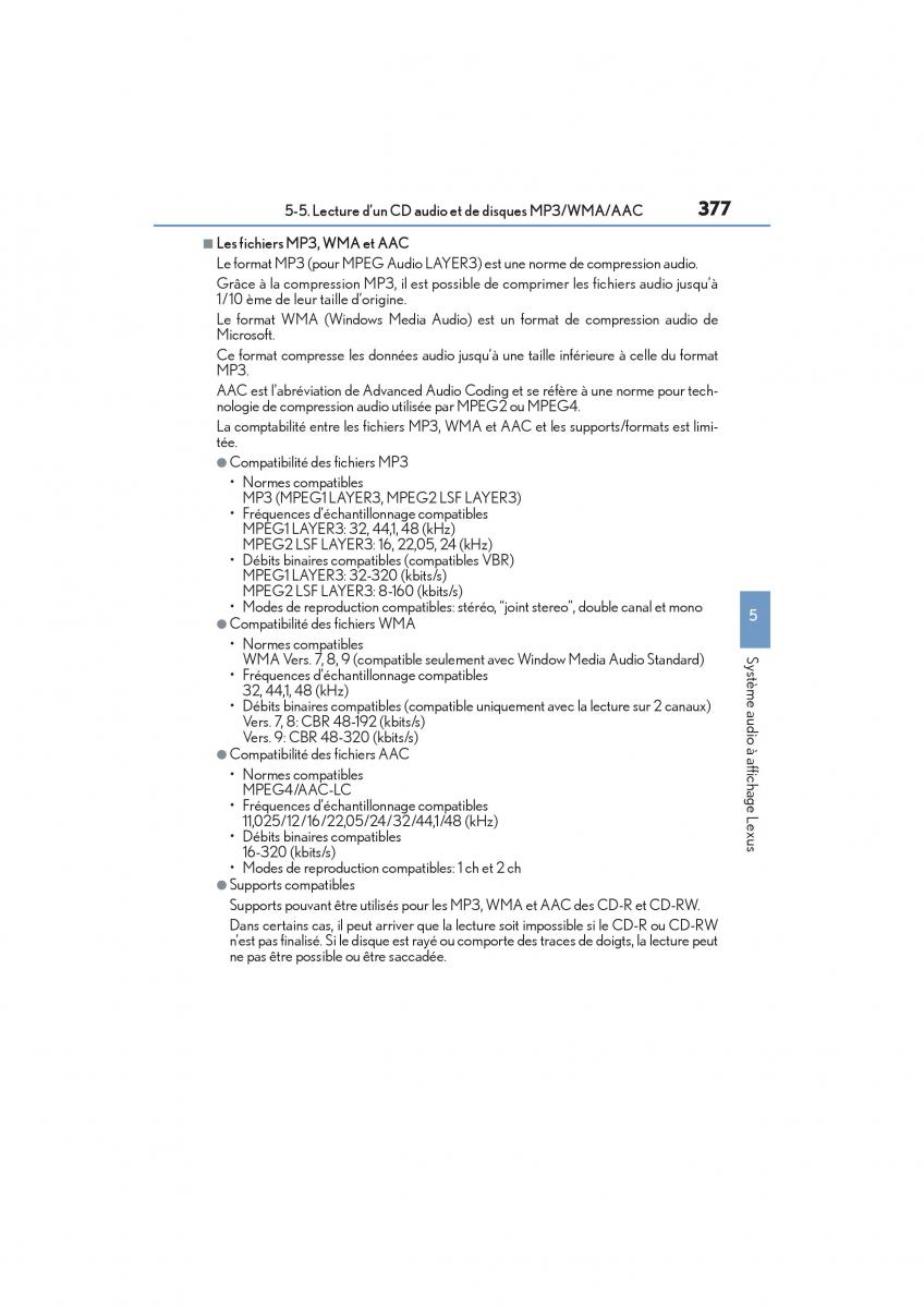 5-5. Lecture d’un CD audio et de disques MP3/WMA/AAC377