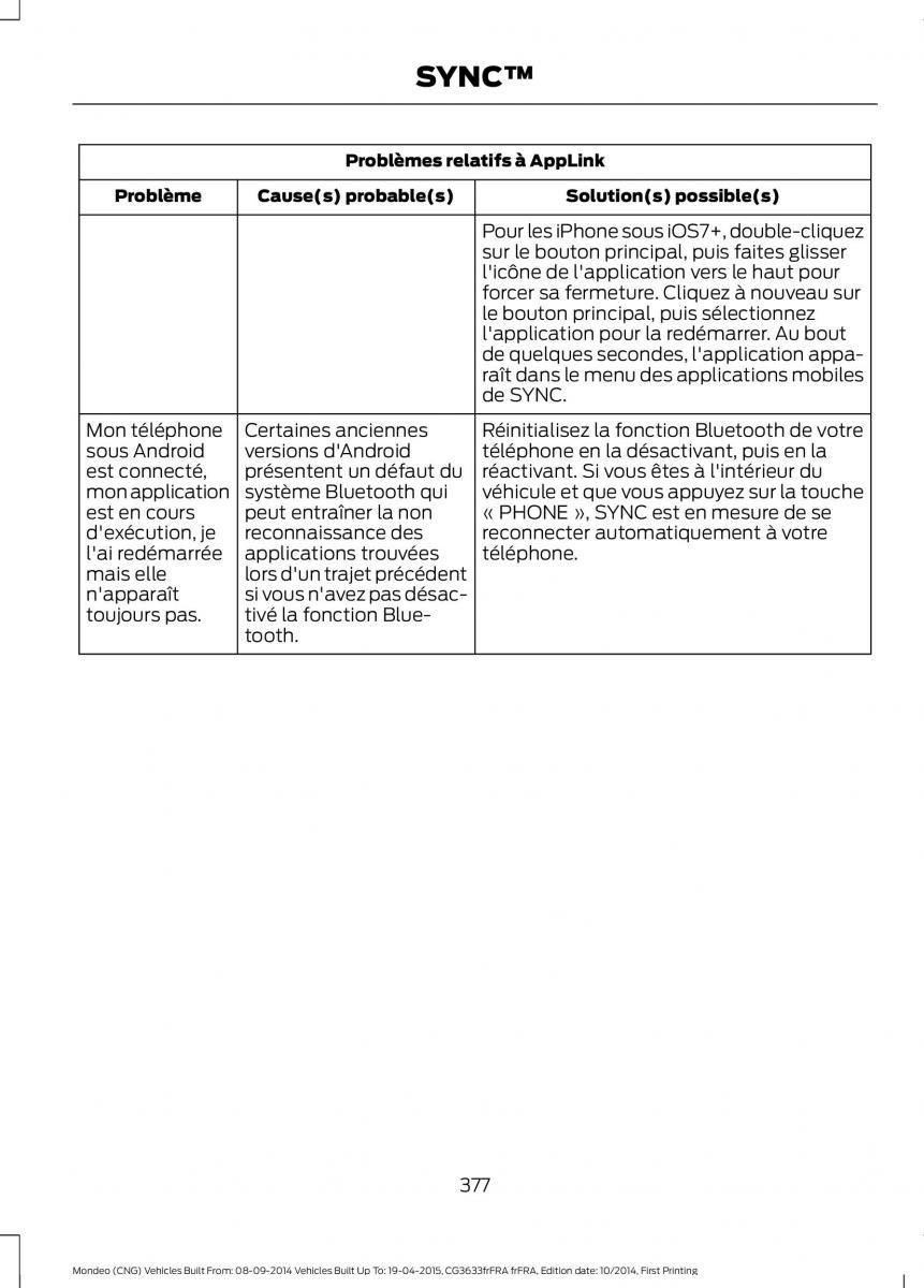 Mondeo (CNG) Vehicles Built From: 08-09-2014 Vehicles Built Up To: 19-04-2015, CG3633frFRA frFRA, Edition date: 10/2014, First Printing
