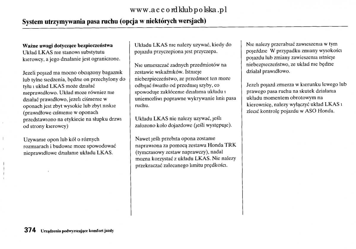 owners manual Honda Accord - year of production: 2008, 2009, 2010, 2011, 2012, 2013, 2014, 2015 - Honda Accord VIII 8 instrukcja obslugi PL