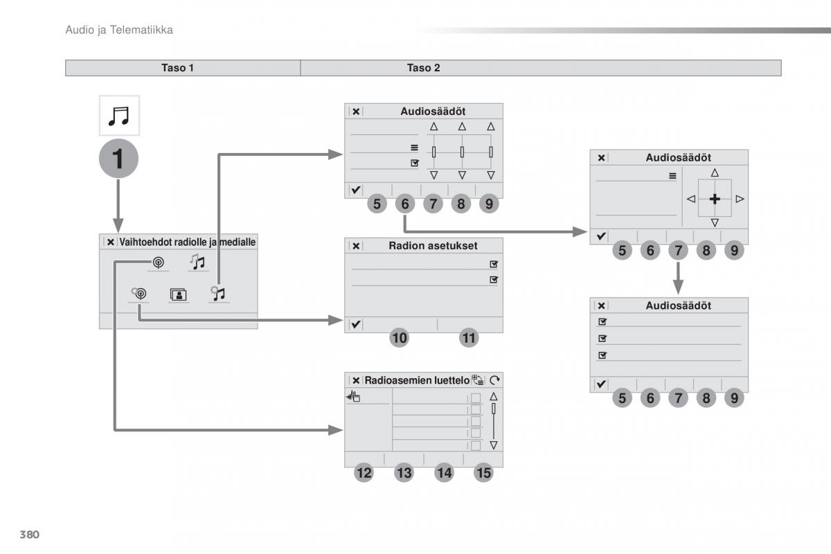 Vaihtoehdot radiolle ja medialleRadion asetukset5 6 7 8 9