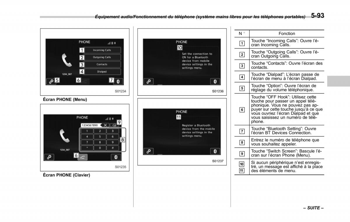 5-92 Équipementaudio/Fonctionnement du téléphone (système mains libres pour les téléphones portables)Équipement audio/Fonctionnement du téléphone (système mains libres pour les téléphones portables)5-93