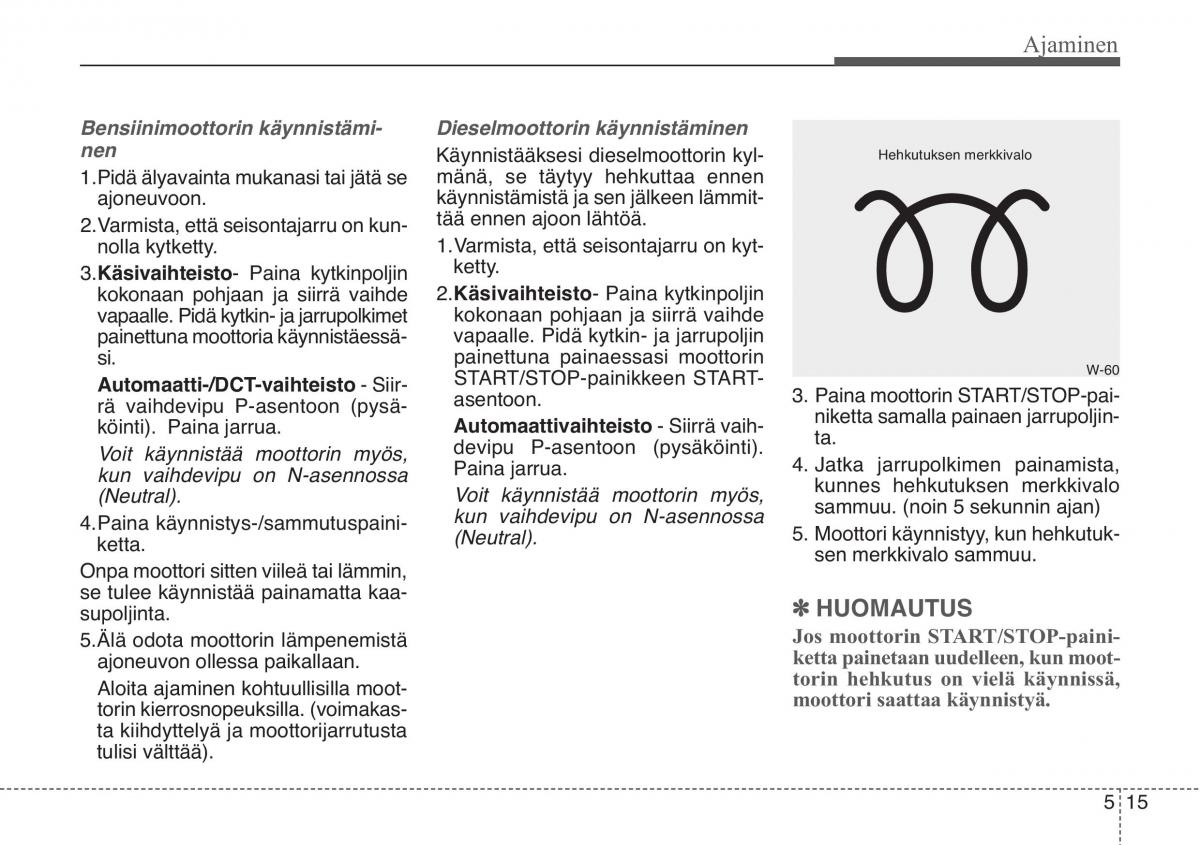 Bensiinimoottorin käynnistämi- Dieselmoottorin käynnistäminen