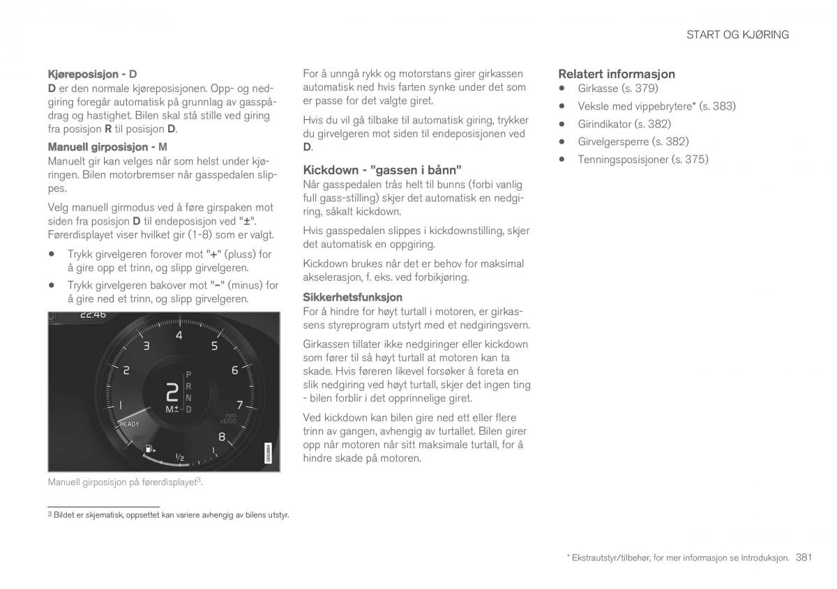 D er den normale kjøreposisjonen. Opp- og ned- automatisk ned hvis farten synke under det som Girkasse (s. 379)