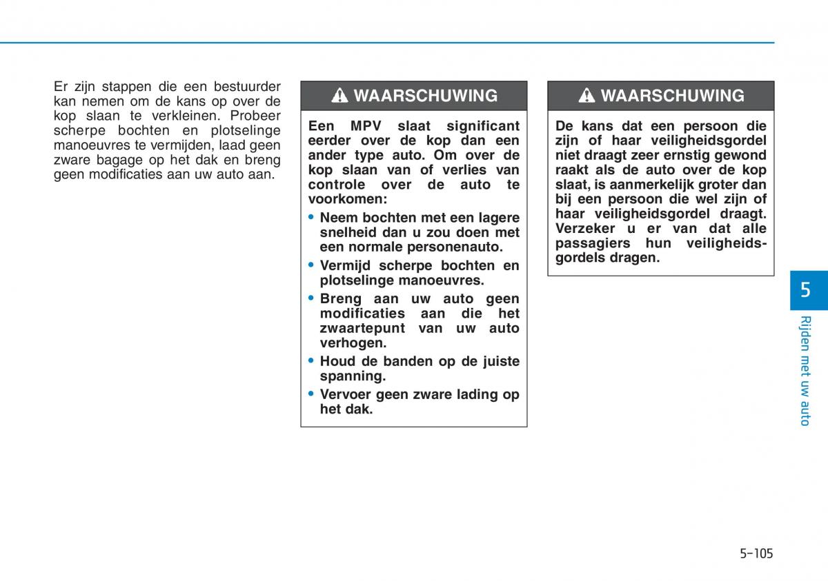 manoeuvres te vermijden, laad geeneerder over de kop dan eenzijn of haar veiligheidsgordel