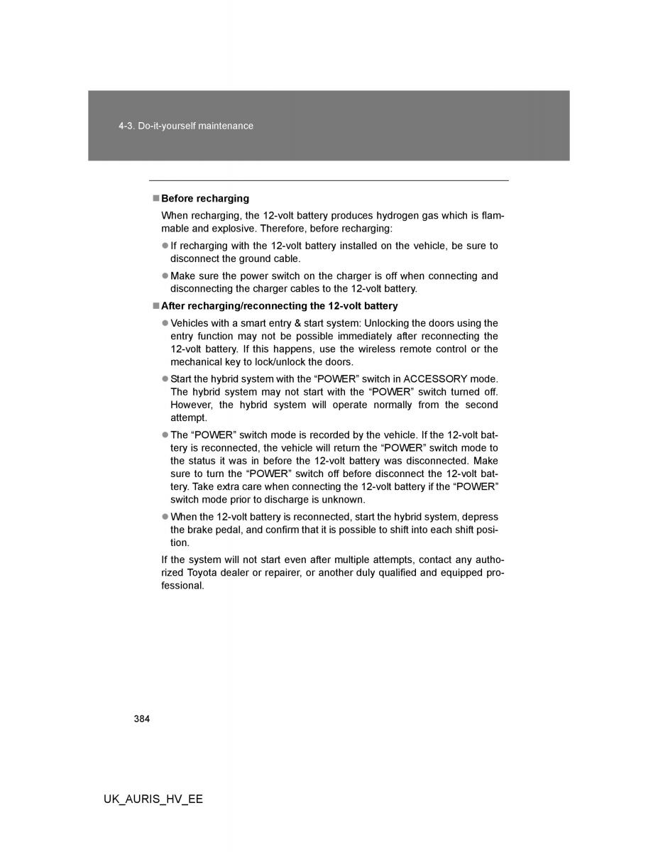 from owners manual to the vehicle Toyota Auris Hybrid, year of production 2007 - 2012: