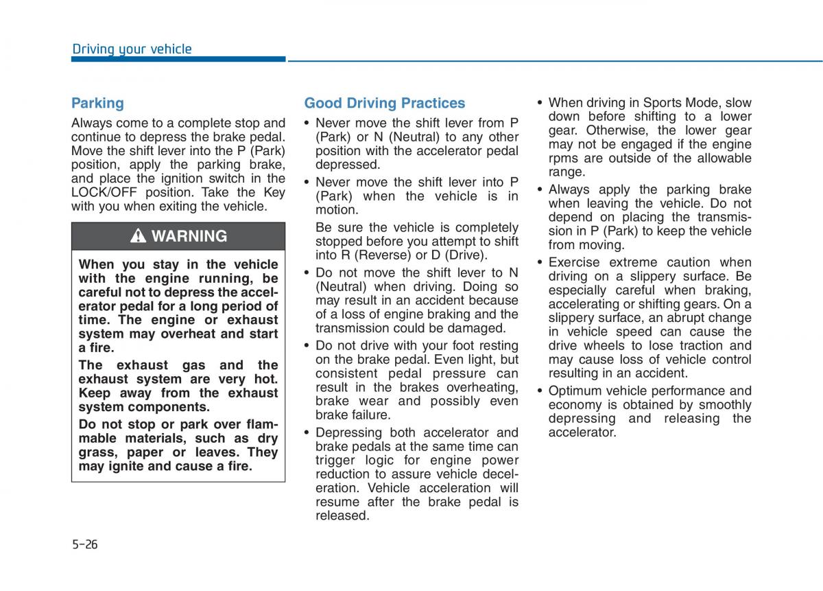 Parking Good Driving Practices • When driving in Sports Mode, slow
