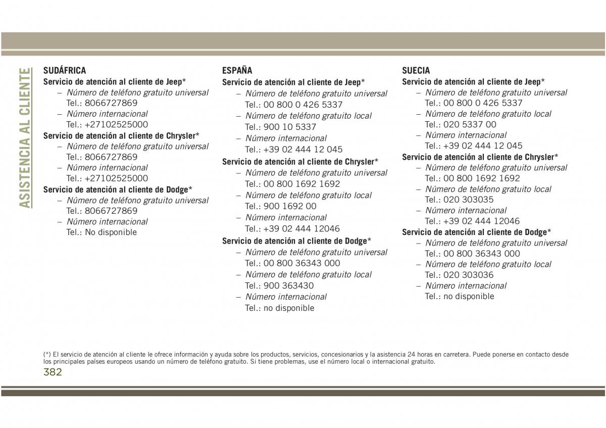 Tel.: No disponible Servicio de atención al cliente de Dodge*