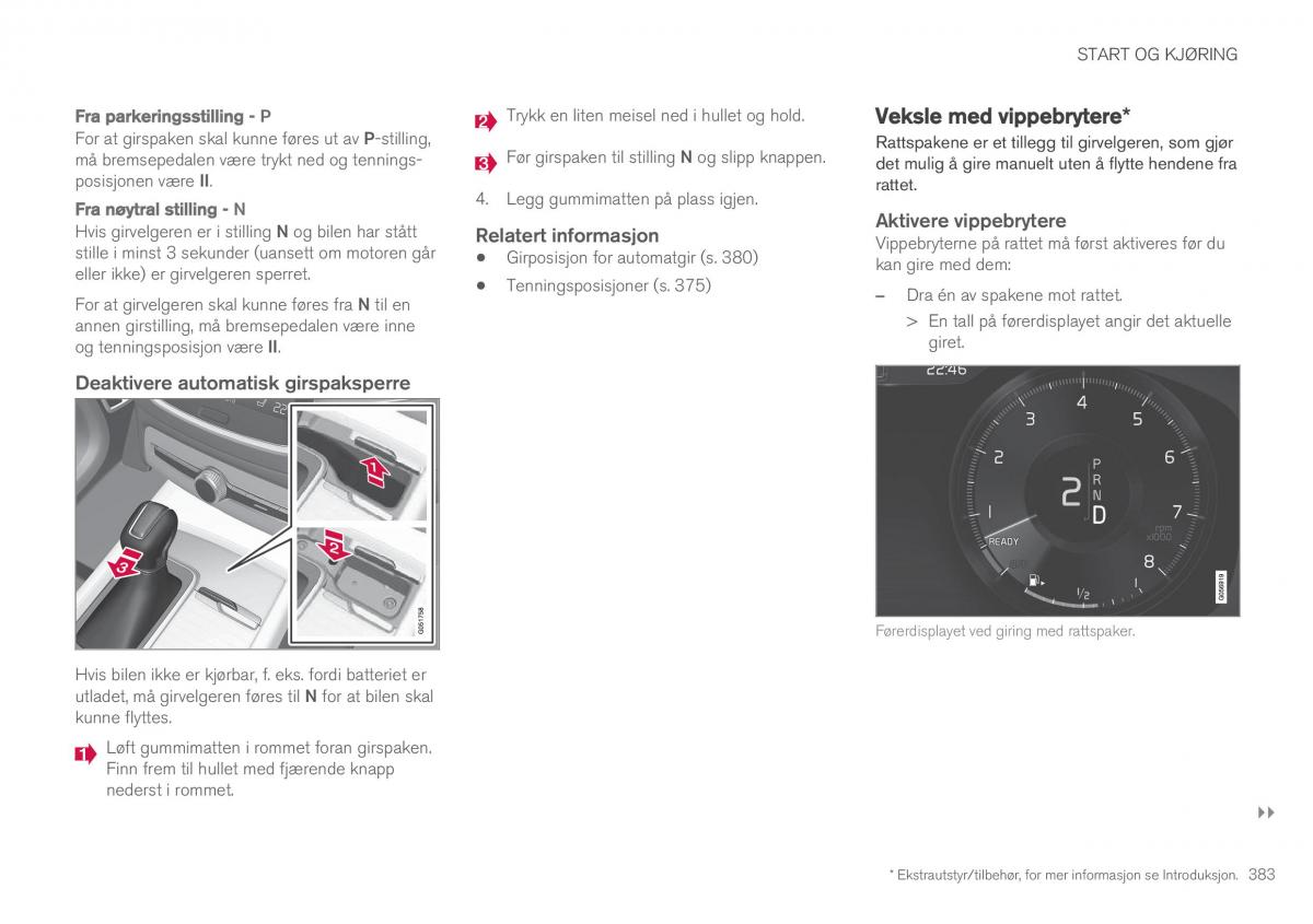 stille i minst 3 sekunder (uansett om motoren gårGirposisjon for automatgir (s. 380)Vippebryterne på rattet må først aktiveres før du
