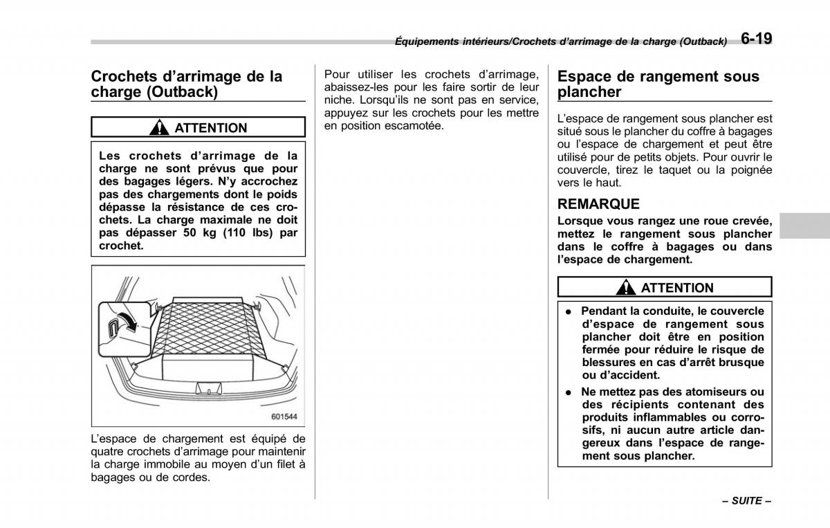 Équipements intérieurs/Crochets d’arrimage de la charge (Outback)6-19