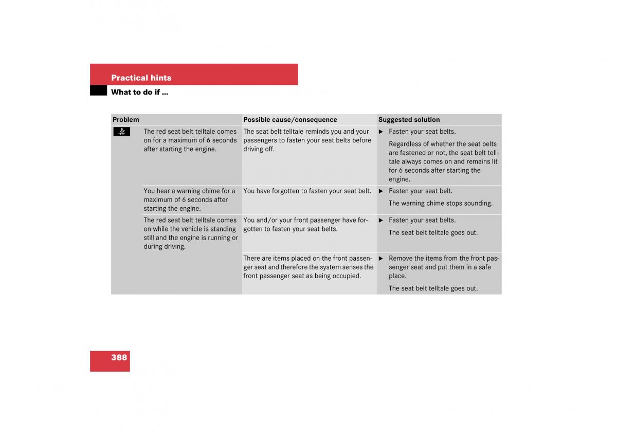 The red seat belt telltale comes You and/or your front passenger have for- Fasten your seat belts.