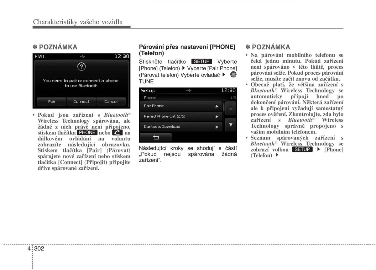 ✽✽ POZNÁMKA Párování přes nastavení [PHONE] ✽✽ POZNÁMKA
