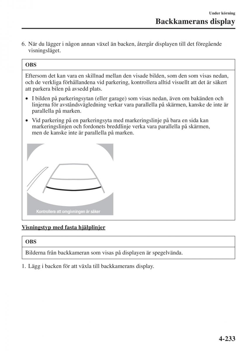 Bilderna från backkameran som visas på displayen är spegelvända.