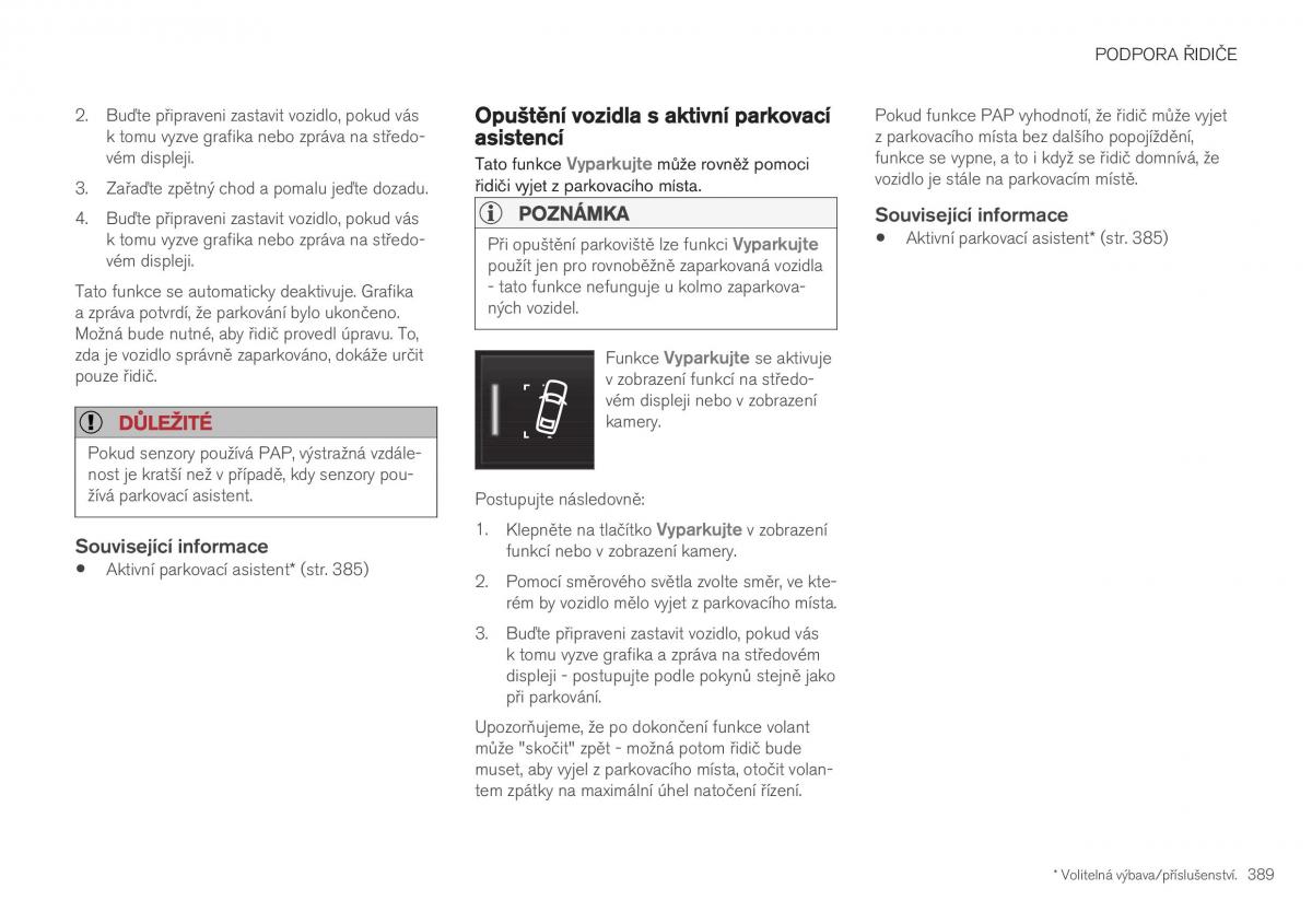 k tomu vyzve grafika nebo zpráva na středo-Při opuštění parkoviště lze funkci Vyparkujte• Aktivní parkovací asistent* (str. 385)