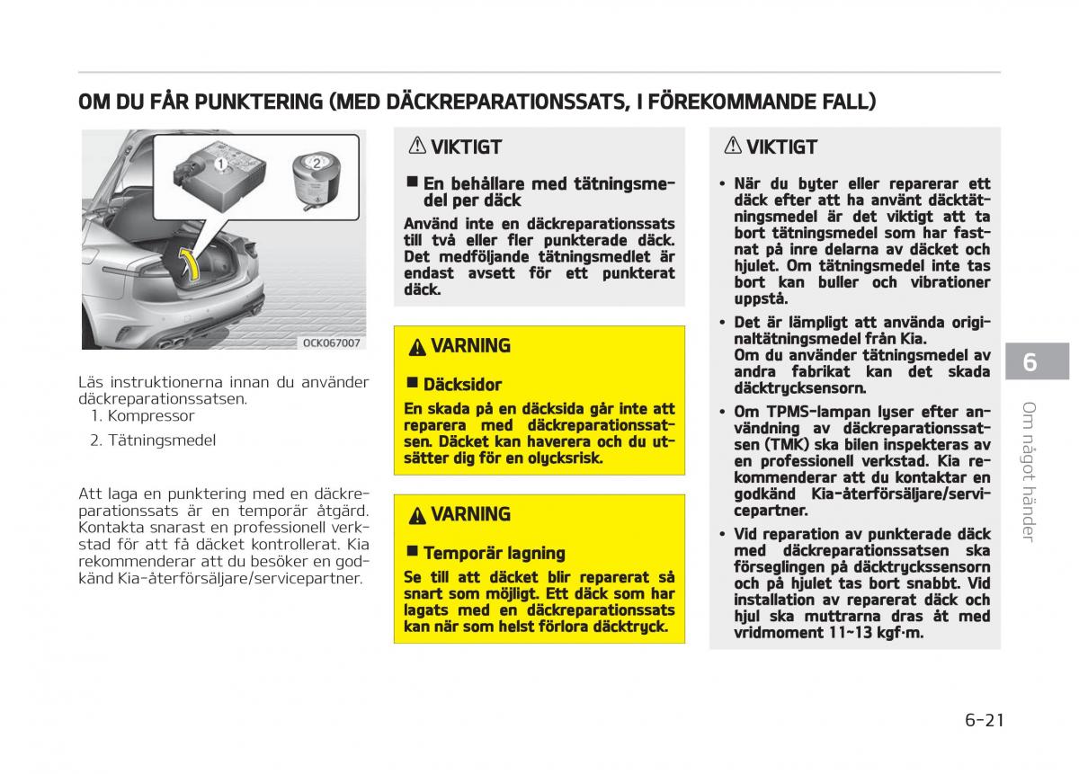 Att laga en punktering med en d䜮ckre‐ godk䜮nd KiaÄ䜯terförs䜮ljare/servi‐