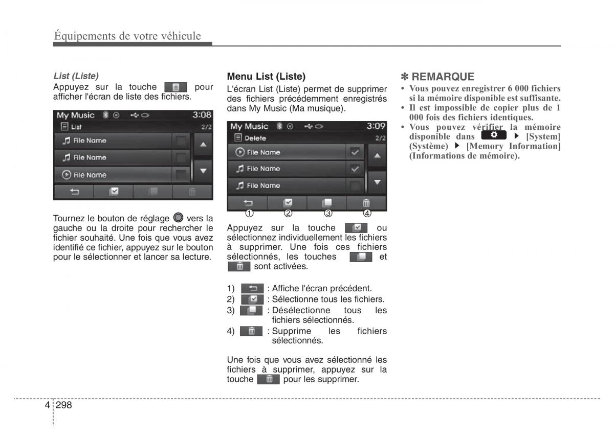 afficher l'écran de liste des fichiers.L'écran List (Liste) permet de supprimer