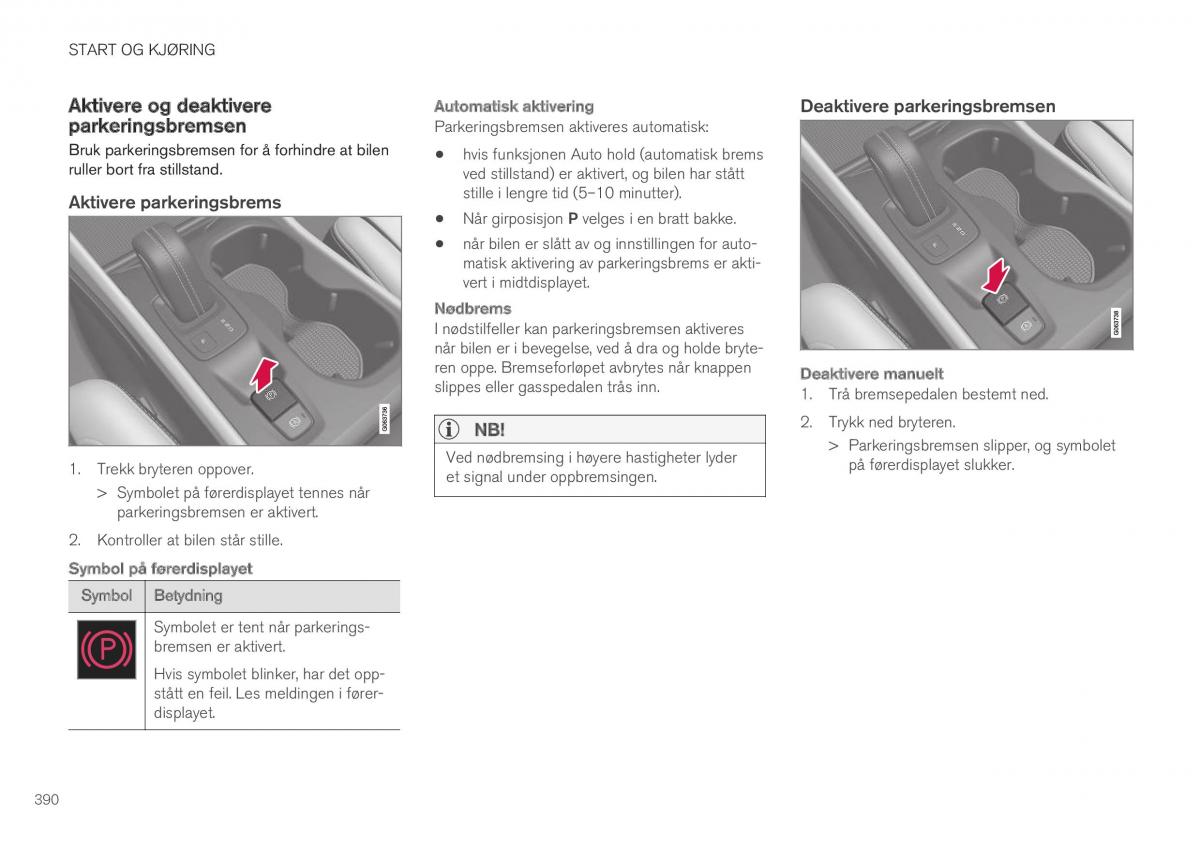 Aktivere og deaktivere Automatisk aktivering Deaktivere parkeringsbremsen