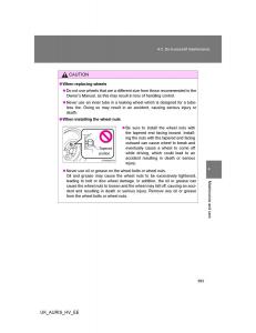 from owners manual to the vehicle Toyota Auris Hybrid, year of production 2007 - 2012: