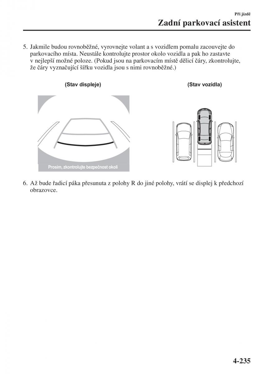 parkovacího místa. Neustále kontrolujte prostor okolo vozidla a pak ho zastavte