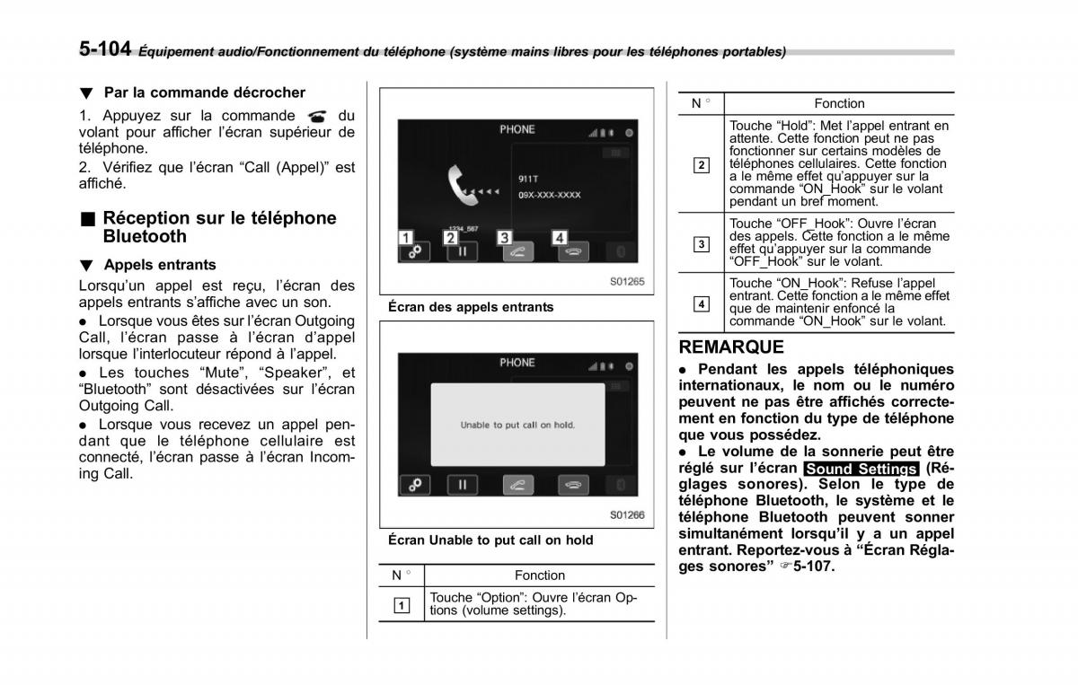 5-104 Équipement audio/Fonctionnement du téléphone (système mains libres pour les téléphones portables) Équipement audio/Fonctionnement du téléphone (système mains libres pour les téléphones portables) 5-105