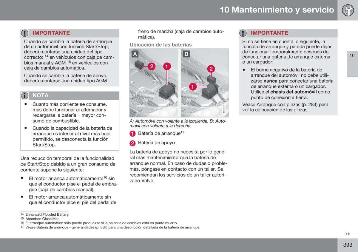 Véase Batería de arranque - generalidades (p. 388) para una descripción detallada de la batería de arranque.