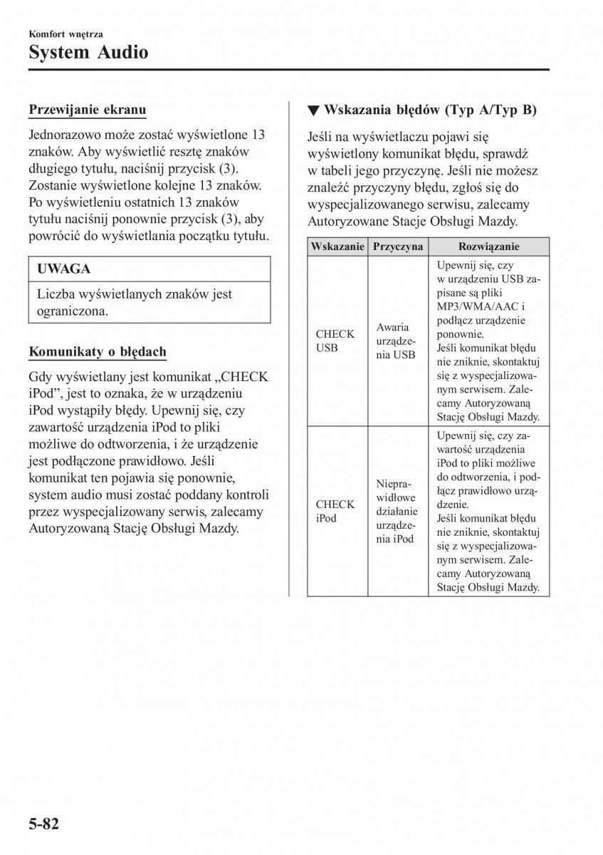 Autoryzowaną Stację Obsługi Mazdy. iPod urządze-Jeśli komunikat błędu