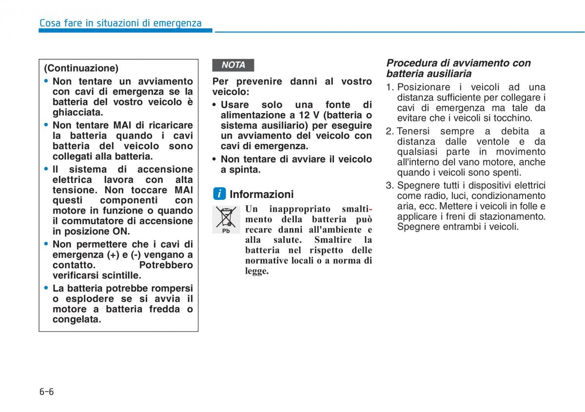 • Non tentare un avviamento batteria ausiliaria
