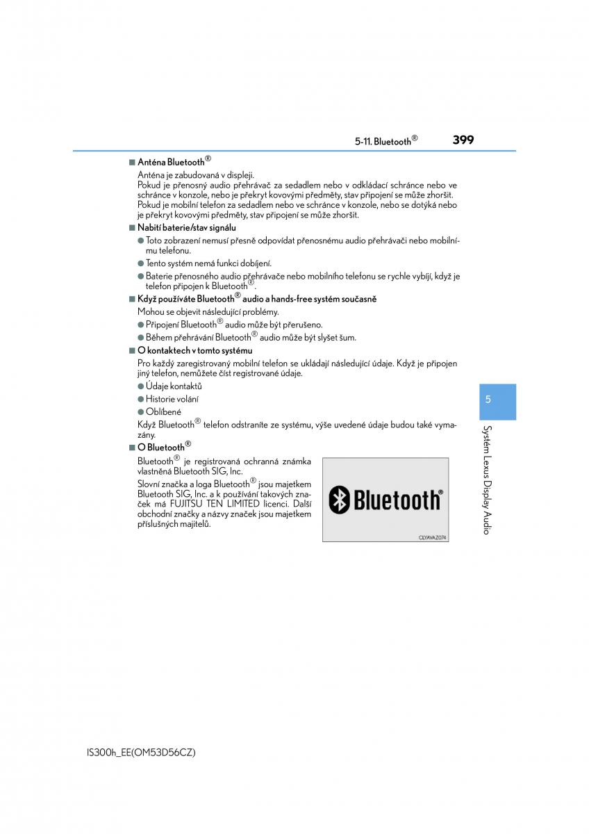 Když Bluetooth telefon odstraníte ze systému, výe uvedené údaje budou také vyma- Systém Lexus