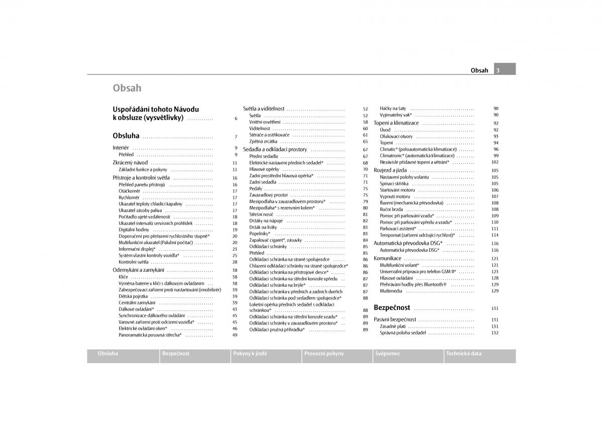 Obsluha . . . . . . . . . . . . . . . . . . . . . . . . . . . . . . . . . . . 7Stěrače a ostřikovače . . . . . . . . . . . . . . . . . . . . . . . . . .61Ofukovací otvory . . . . . . . . . . . . . . . . . . . . . . . . . . . . . 93