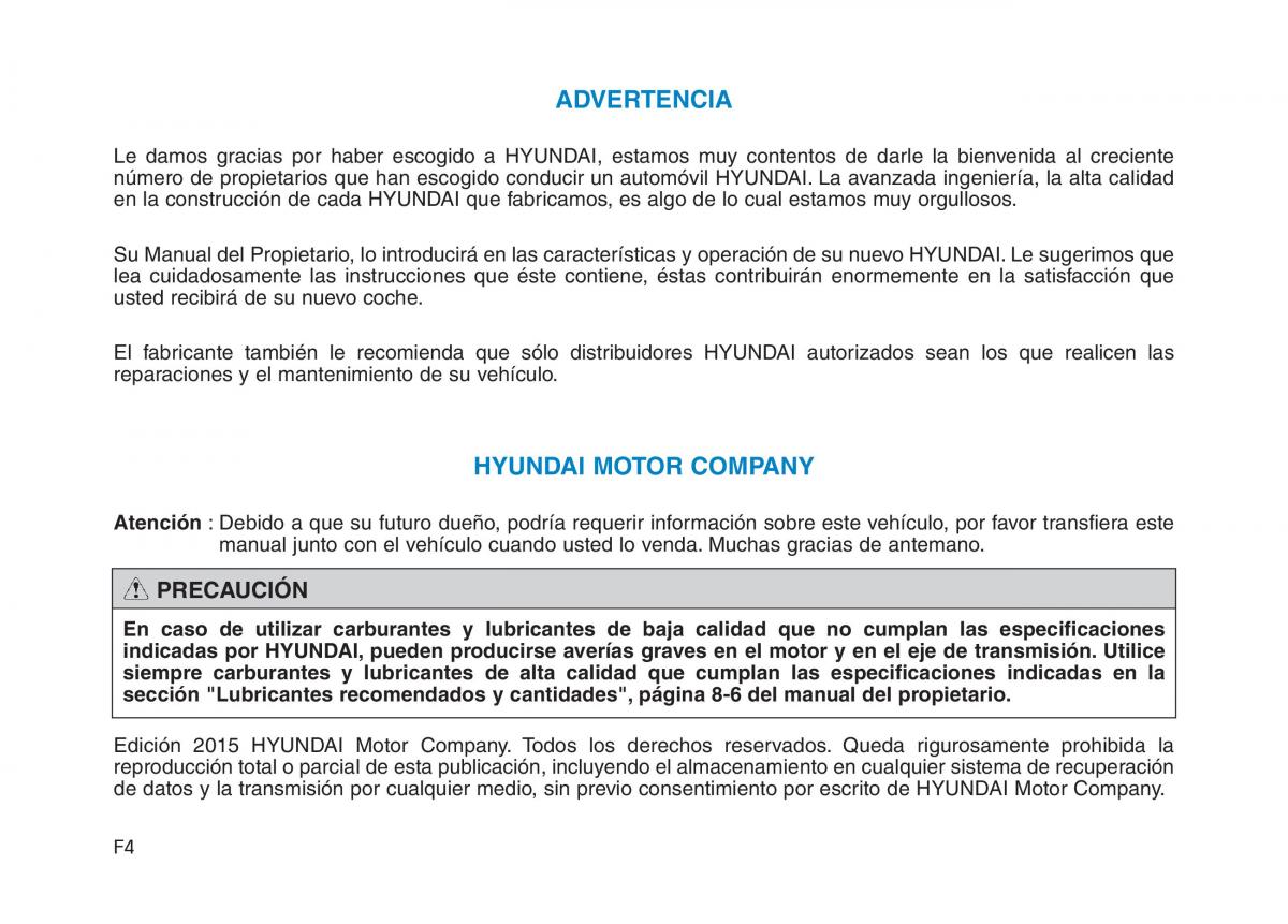 Su Manual del Propietario, lo introducirá en las características y operación de su nuevo HYUNDAI.Le sugerimos que
