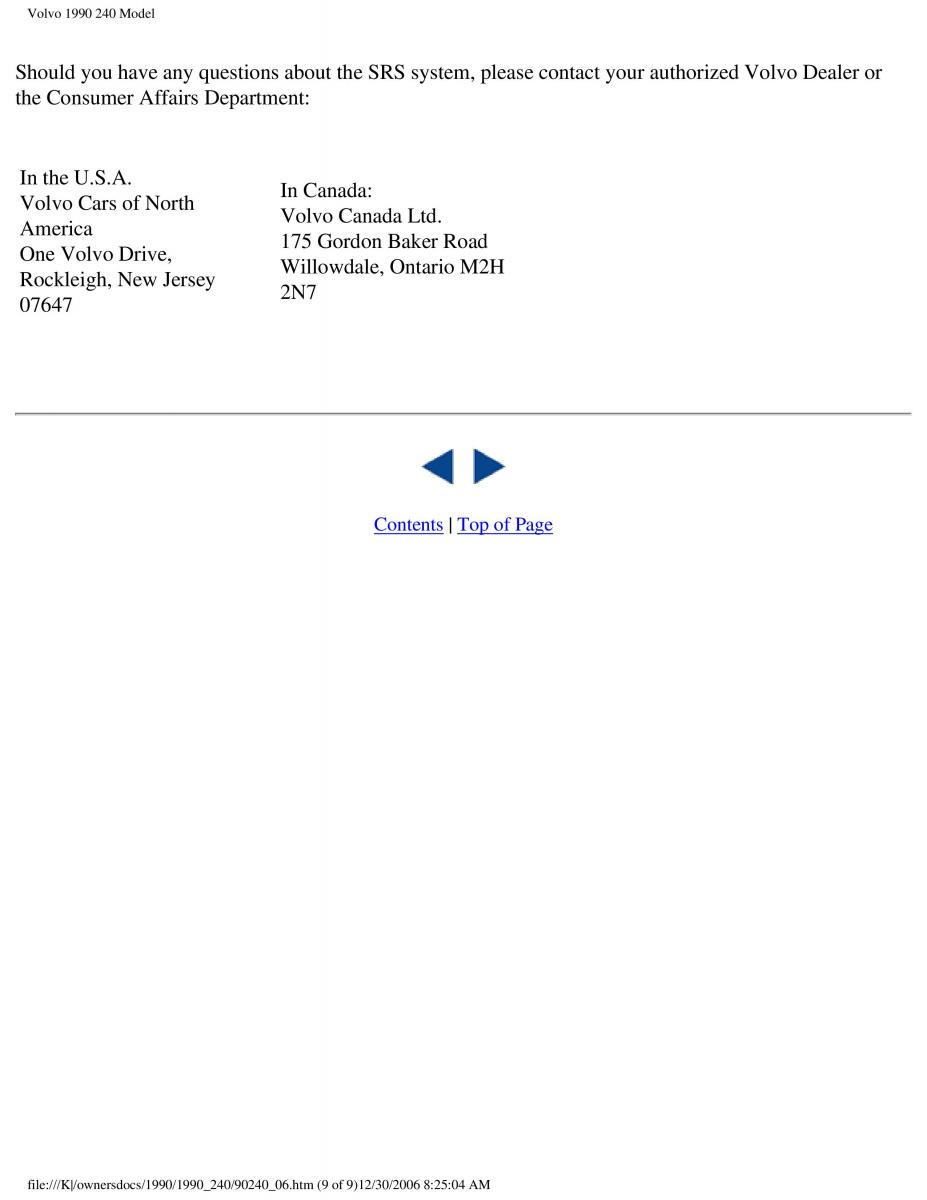 Should you have any questions about the SRS system, please contact your authorized Volvo Dealer or